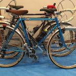 フロントバッグ+前後左右4つのパニアバッグ姿こそ少数派だったものの、ホリゾンタルのクロモリフレームに650B(/A)タイヤと泥除けという伝統的なスタイルが主流派だ。
